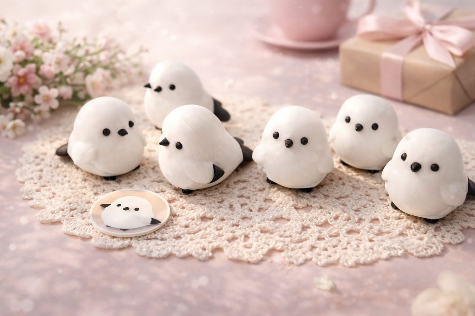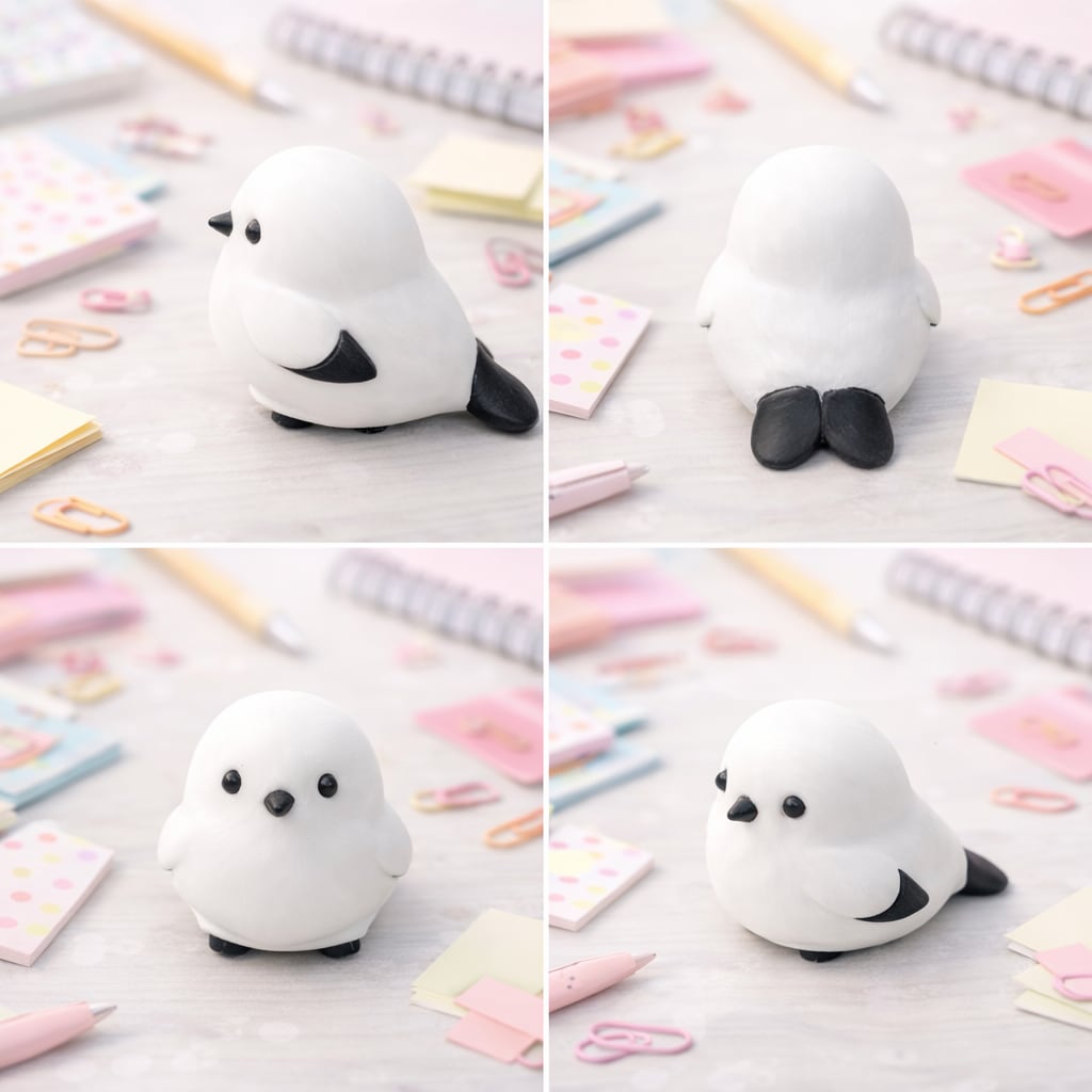 ふんわり丸い白い体に、ちょこんとした黒いくちばしと羽。