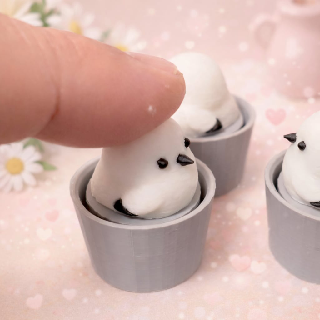 ふんわり丸い白い体に、ちょこんとした黒いくちばし。