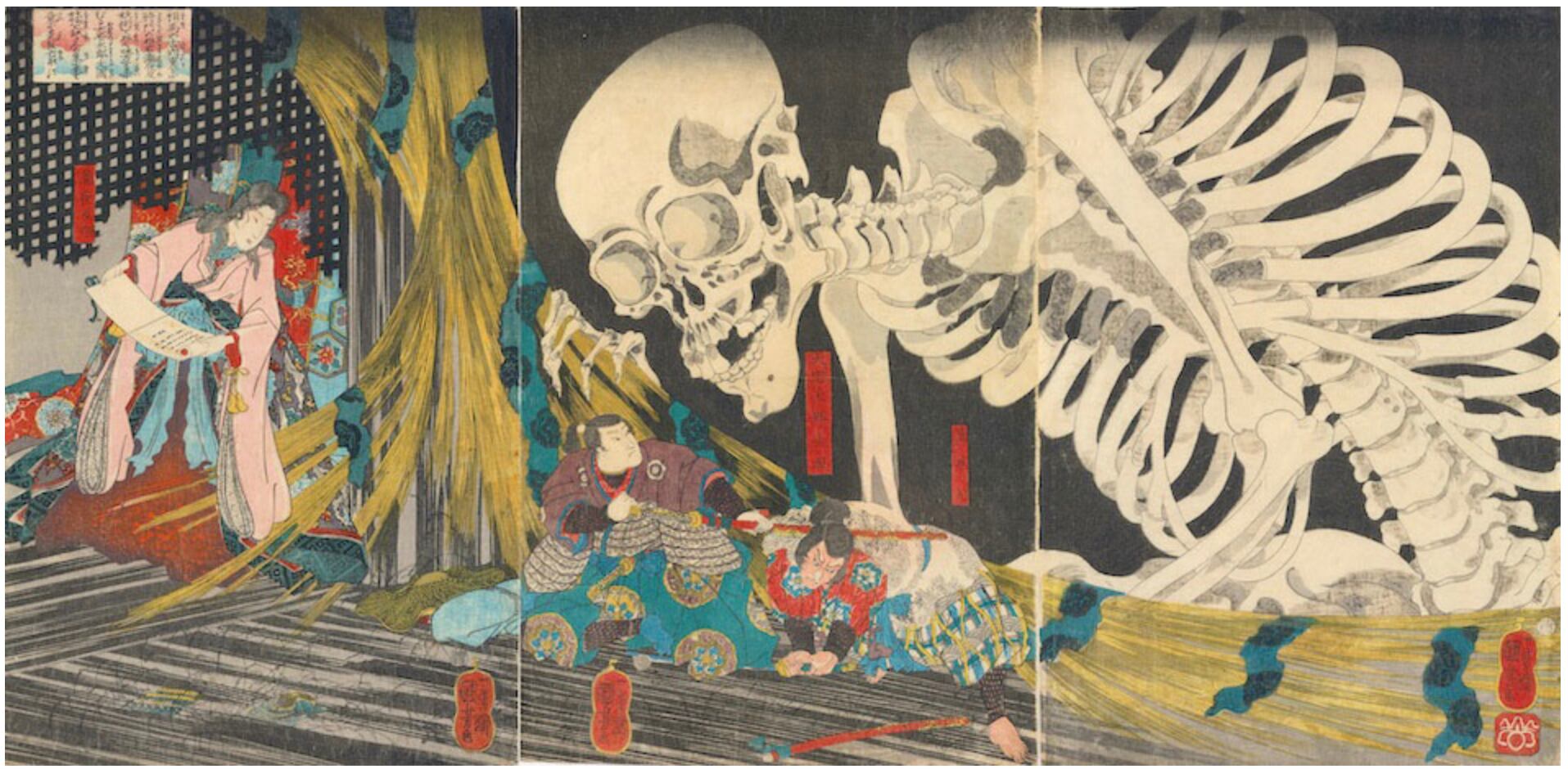 山東京伝の読本『善知安方忠義伝』をモチーフにした作品で、巨大な骸骨が特徴的です。